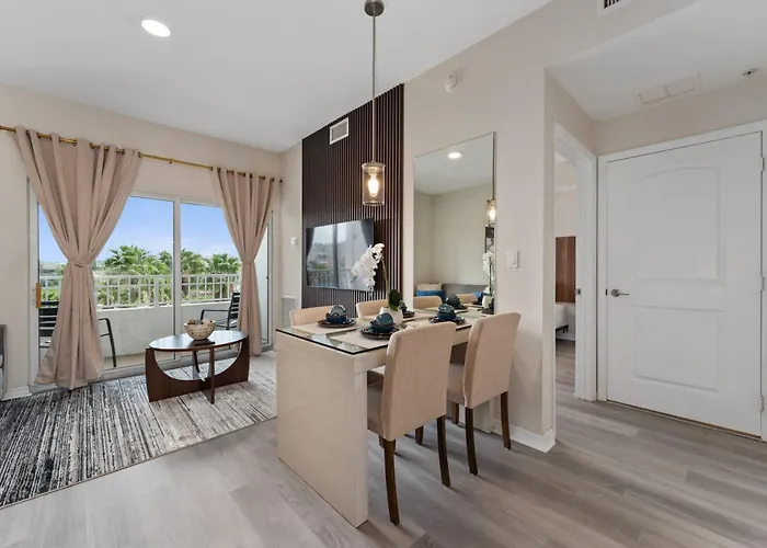 Stylish Studio Kitchen King Sofa Bed Orlando is gelegen binnen 10 minuten rjden van de iFLY Orlando en op 3 km van het Volcano Bay waterpark. Het appartement biedt een overdekt zwembad voor gasten om van te genieten tijdens hun verblijf.